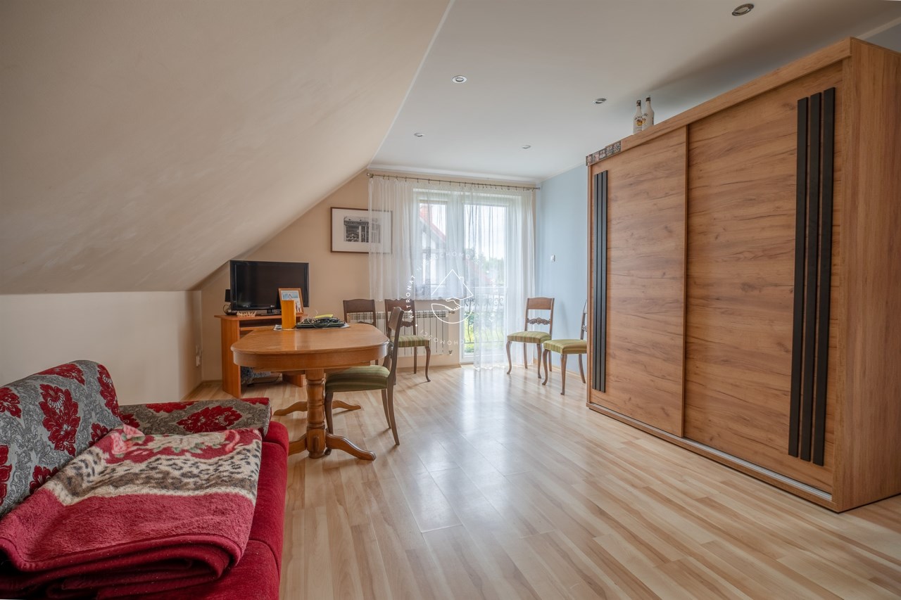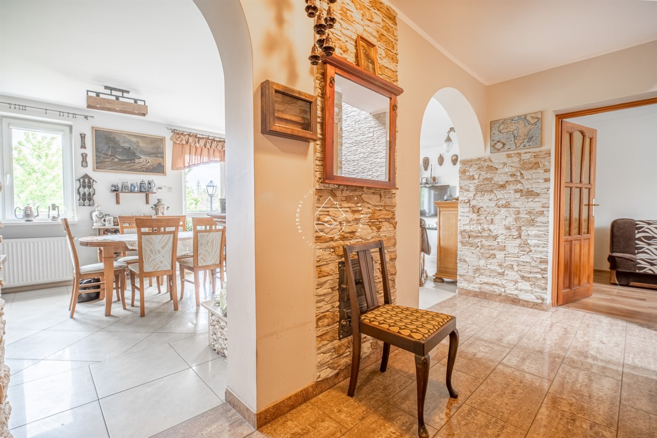 Dom oferuje układ 5-pokojowy, z dostępem do dużego salonu z wyjściem na balkon, na piętrze znajdują się 3 sypialnie, łazienka i garderoba.