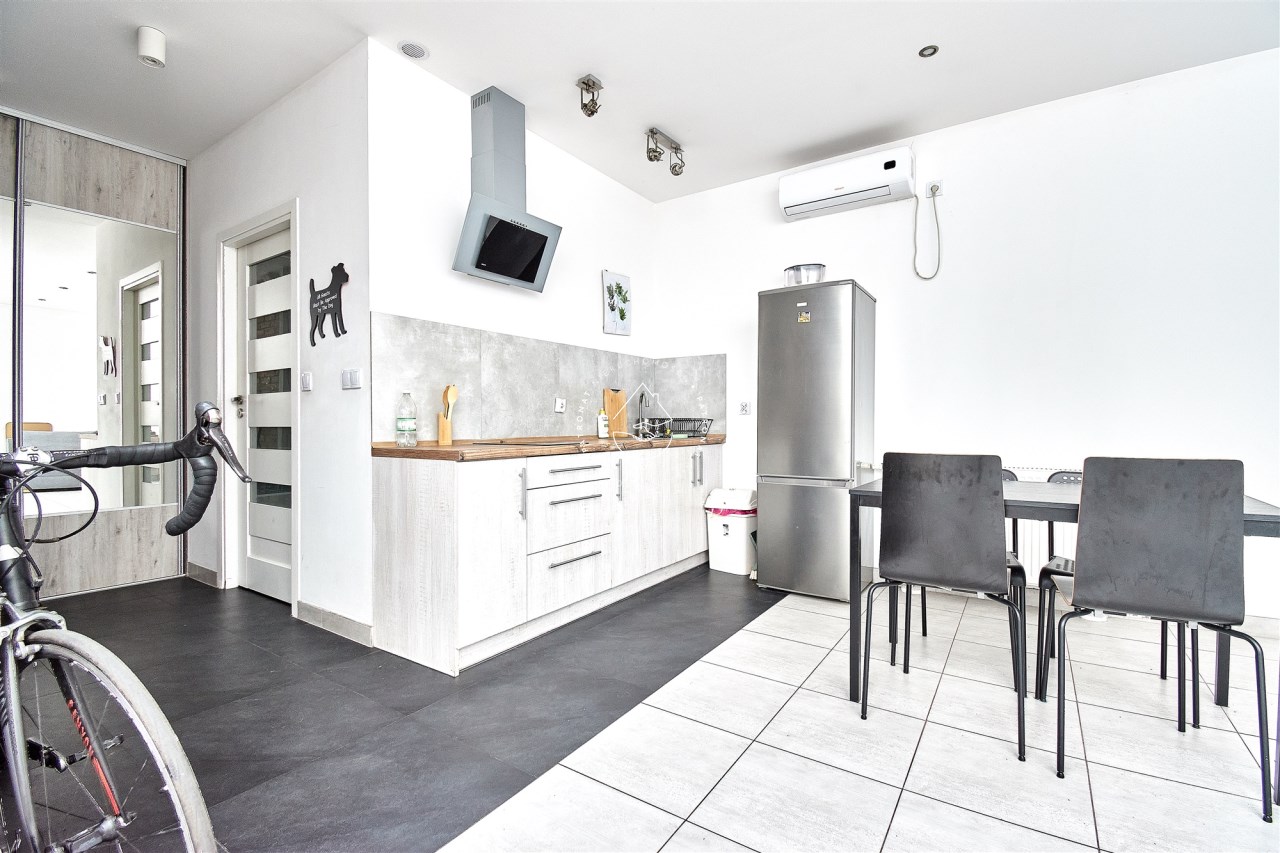 Nieruchomość wykazuje pole powierzchni użytkowej 33,35 m2. W skład metrażu nieruchomości wchodzą: salon z aneksem kuchennym, łazienka oraz przedpokój. W mieszkaniu występują okna dachowe.