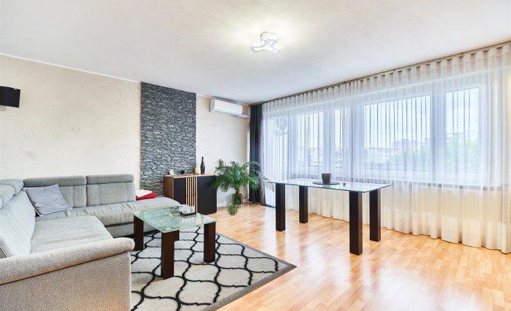 Nieruchomość wykazuje pole powierzchni użytkowej 54 m2. W skład metrażu nieruchomości wchodzą: pokój salonowy z aneksem kuchennym, pokój sypialniany oraz łazienka. Mieszkanie z ekspozycją północno-wschodnią, północno-zachodnią oraz wschodnią, zapewniając przy tym optymalne doświetlenie pomieszczeń w ciągu doby.